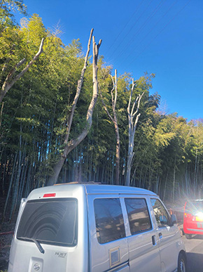 ご遺族様一人による立ち会いの中、ご自宅近くの竹林が綺麗な林道で、荼毘に伏せさせて頂きました。