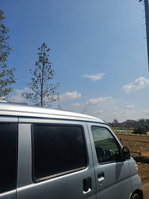 ご自宅近くの駐車場にて、ご遺族様がご用意した、おくるみに包まれ、お花、大好きなおやつ等をお供えして、最後のお別れでした。
